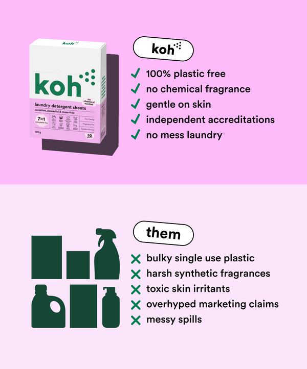 We believe a clean home shouldn’t come at the cost of the environment around us. That’s why Koh's cleaning products are packaged to minimise as much waste as possible and use tools that are reusable, refillable and very long-lasting. What’s on the inside counts too, Koh cleaning products are certified by GECA, Australia’s only independent, not-for-profit sustainability and environmental certification as a good environmental choice.