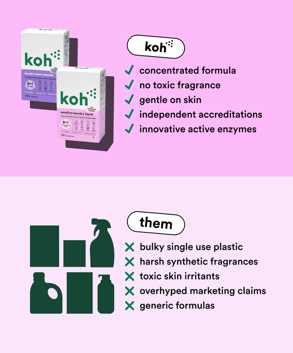 Koh products are proudly fragrance free and independently verified by The National Asthma Council Australia’s Sensitive Choice program and Allergy UK to be suitable for those suffering asthma and allergies.