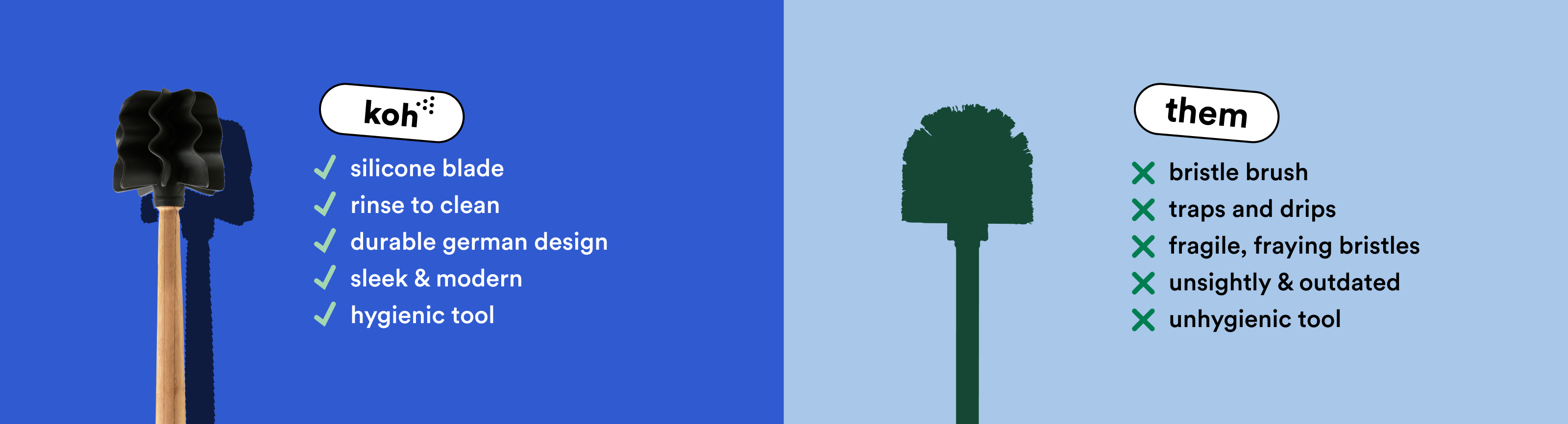 The cleaning industry has long leaned on hardcore chemicals delivered with plenty of elbow grease. At Koh, we believe in less leaning, and more cleaning. That’s why we’ve doubled down on innovation, to develop our own (scientifically tested) products, delivered with tools that make your clean a dream. From atomisers that use less, to loo blades that swipe more, we’ll never stop working hard to make your clean easy.