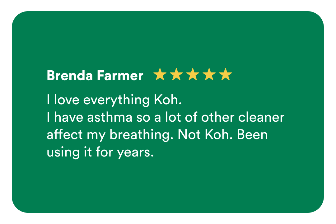 Most cleaning products contain toxic fumes and hormone-disrupting chemicals like VOCs, phthalates, and worse. Koh cleans powerfully - without the health risks.