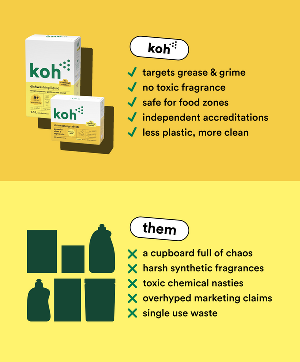We believe a clean home shouldn’t come at the cost of the environment around us. That’s why Koh's cleaning products are packaged to minimise as much waste as possible and use tools that are reusable, refillable and very long-lasting. What’s on the inside counts too, Koh cleaning products are certified by GECA, Australia’s only independent, not-for-profit sustainability and environmental certification as a good environmental choice.