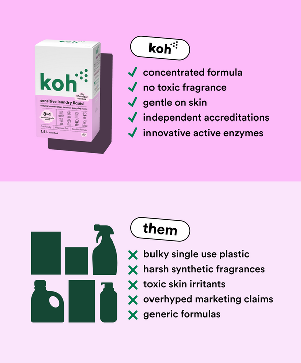 Koh products are proudly fragrance free and independently verified by The National Asthma Council Australia’s Sensitive Choice program and Allergy UK to be suitable for those suffering asthma and allergies.