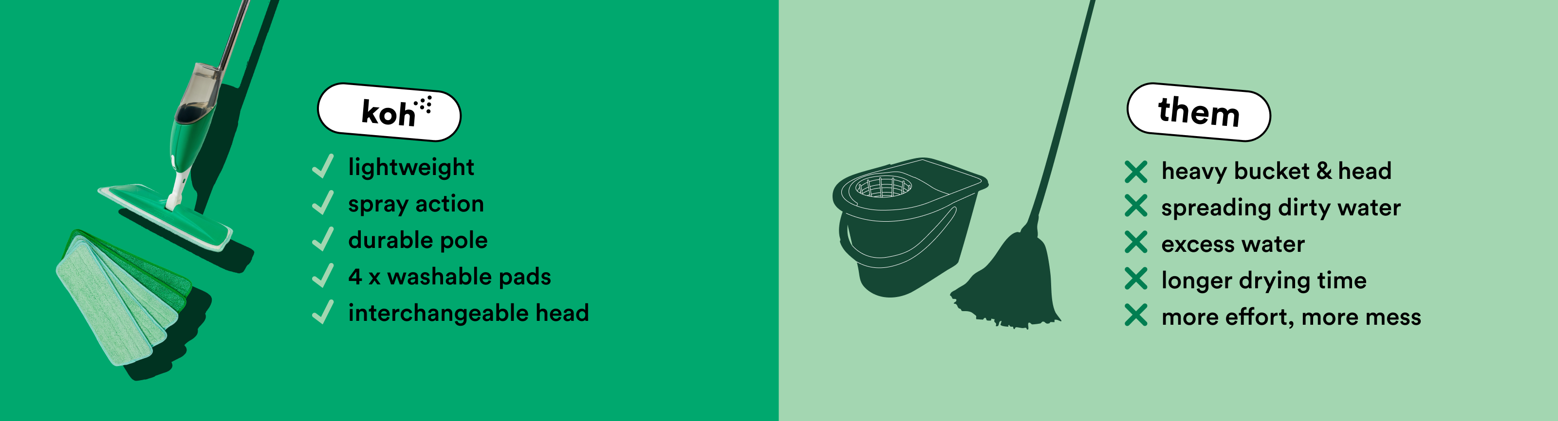 The cleaning industry has long leaned on hardcore chemicals delivered with plenty of elbow grease. At Koh, we believe in less leaning, and more cleaning. That’s why we’ve doubled down on innovation, to develop our own (scientifically tested) products, delivered with tools that make your clean a dream. From atomisers that use less, to loo blades that swipe more, we’ll never stop working hard to make your clean easy.