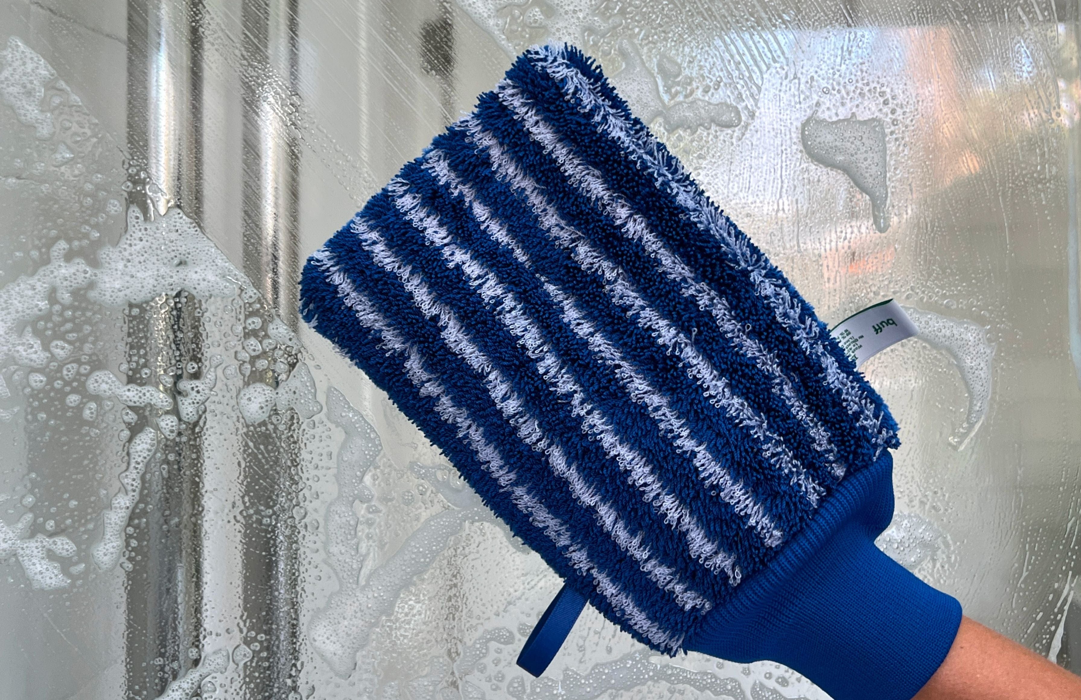 Foamy glide on one side, tough scrub on the other. Flip, swipe, and sparkle. Slides on like a glove and powers through bathroom mess with ease & speed.